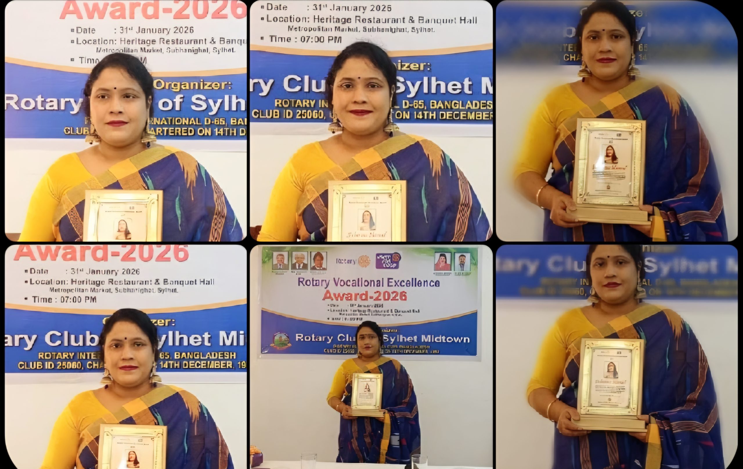 সিলেটের সামাজিক ও সেবামূলক অঙ্গনের অন্যতম সক্রিয় সংগঠন সিলেট মিডটাউন রোটারি ক্লাবের উদ্যোগে আড়ম্বরপূর্ণ অনুষ্ঠানের মধ্য দিয়ে ‘ভোকেশনাল এক্সিলেন্স অ্যাওয়ার্ড–২০২৬’ প্রদান করা হয়েছে। গত শনিবার (৩১ জানুয়ারি ২০২৬) সন্ধ্যায় নগরের একটি অভিজাত হোটেলের হলরুমে আয়োজিত এই অনুষ্ঠানে বিভিন্ন পেশায় অসামান্য অবদানের স্বীকৃতিস্বরূপ বিশিষ্ট ব্যক্তিদের হাতে এই সম্মাননা তুলে দেওয়া হয়।