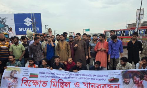 ভিপি নুরের ওপর হামলার প্রতিবাদে আশুলিয়ায় বিক্ষোভ মিছিল-মহাসড়ক অবরোধ