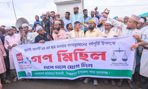 বিশম্ভরপুরে ছাত্র জনতার গণঅভ্যুত্থানের বর্ষপূর্তি উপলক্ষে জামায়াতের গণমিছিল