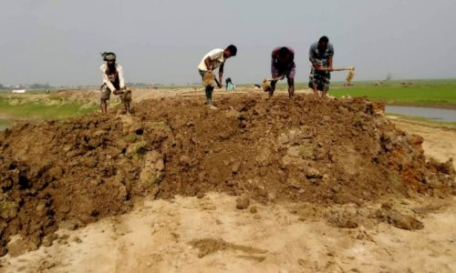 জগন্নাথপুরের নলুয়ার হাওরে ঝুকিপূর্ণ বেড়িবাঁধ নির্মাণ কাজ পিছিয়ে পড়ছেঃ ফ্যাক্ট মাটি সংকট