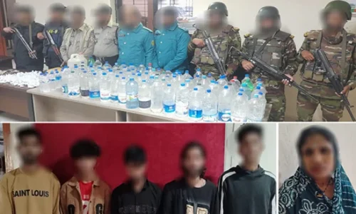 সিলেট কোতোয়ালীতে মাদকবিরোধী অভিযান: বিপুল পরিমাণ চোলাই মদ ও গাঁজাসহ ৬ জন আটক