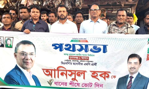 সুনামগঞ্জ-১ আসনে বিএনপি প্রার্থী আনিসুল হকের সমর্থনে মিছিল ও পথসভা