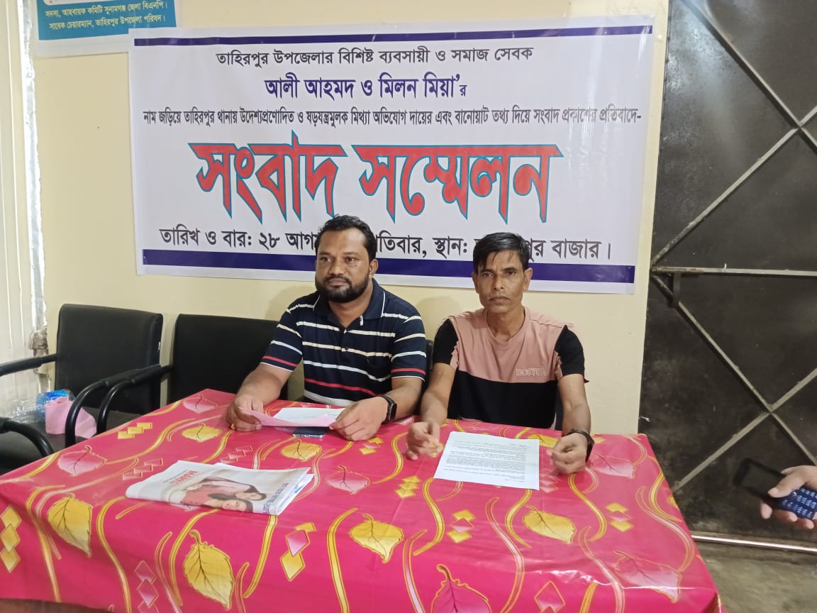 তাহিরপুরে ব্যবসায়ীর বিরুদ্ধে মিথ্যা মামলা প্রতিকার চেয়ে সংবাদ সম্মেলন