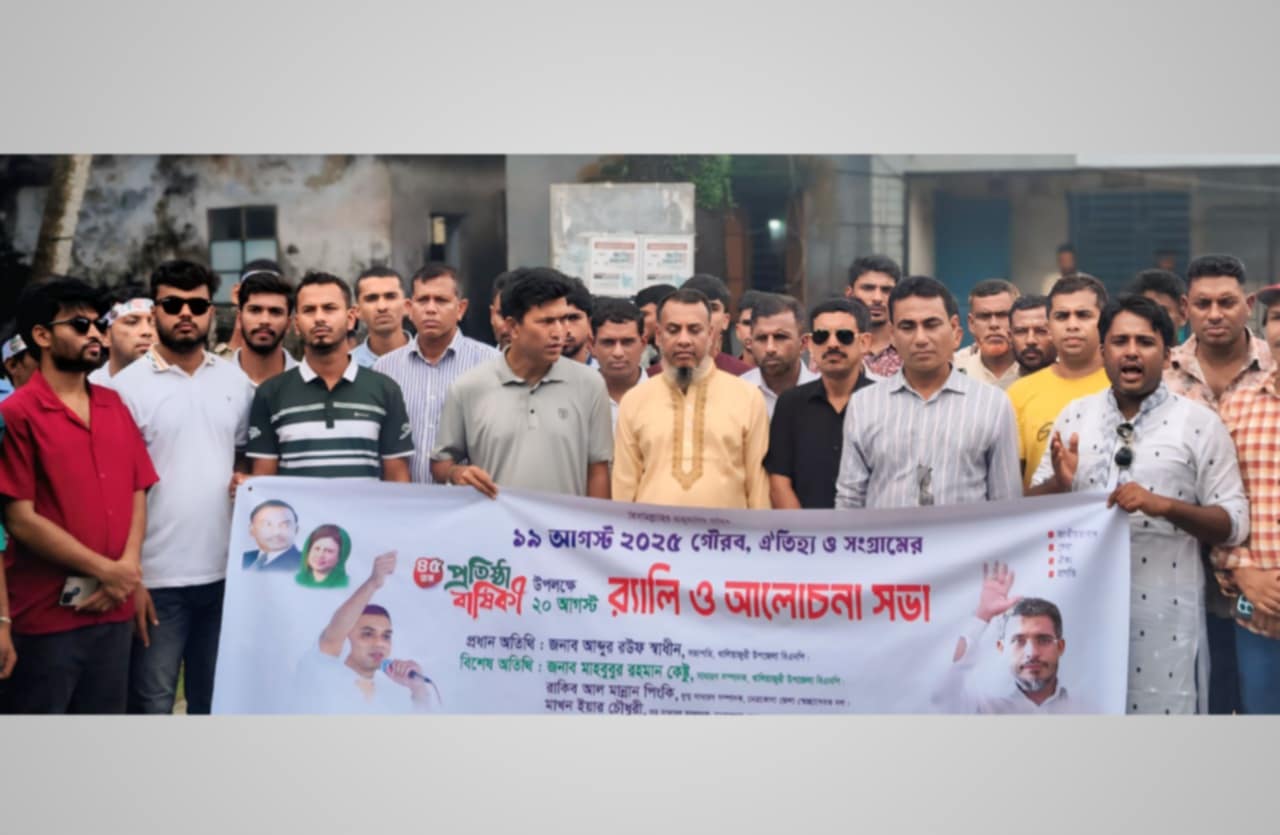 স্বেচ্ছাসেবক দলের ৪৫তম প্রতিষ্ঠা বার্ষিকী উপলক্ষে খালিয়াজুরীতে আনন্দ র‍্যালী