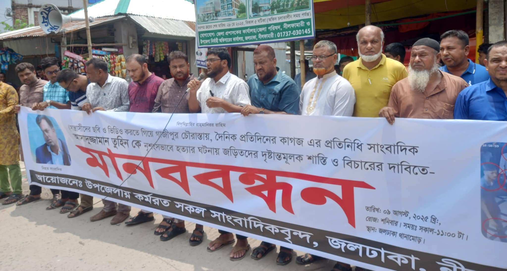 গাজীপুরে সাংবাদিক তুহিন হত্যায় জড়িতদের ফাঁসির দাবীতে জলঢাকায় মানববন্ধন ও সমাবেশ অনুষ্ঠিত