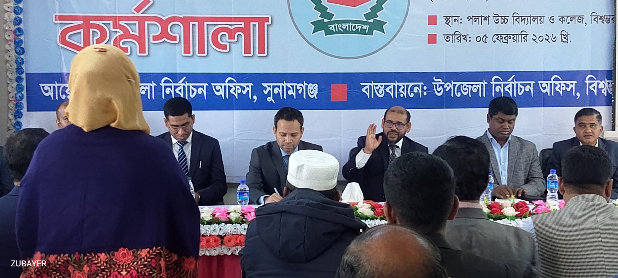 বিশ্বম্ভরপুরের ত্রয়োদশ জাতীয় সংসদ নির্বাচন ও গণভোট ২০২৬ সফলভাবে সম্পন্ন করার লক্ষ্যে প্রিসাইডিং অফিসার, সহকারী প্রিসাইডিং অফিসার ও পোলিং অফিসারদের অংশগ্রহণে প্রশিক্ষণ কর্মশালা অনুষ্ঠিত।